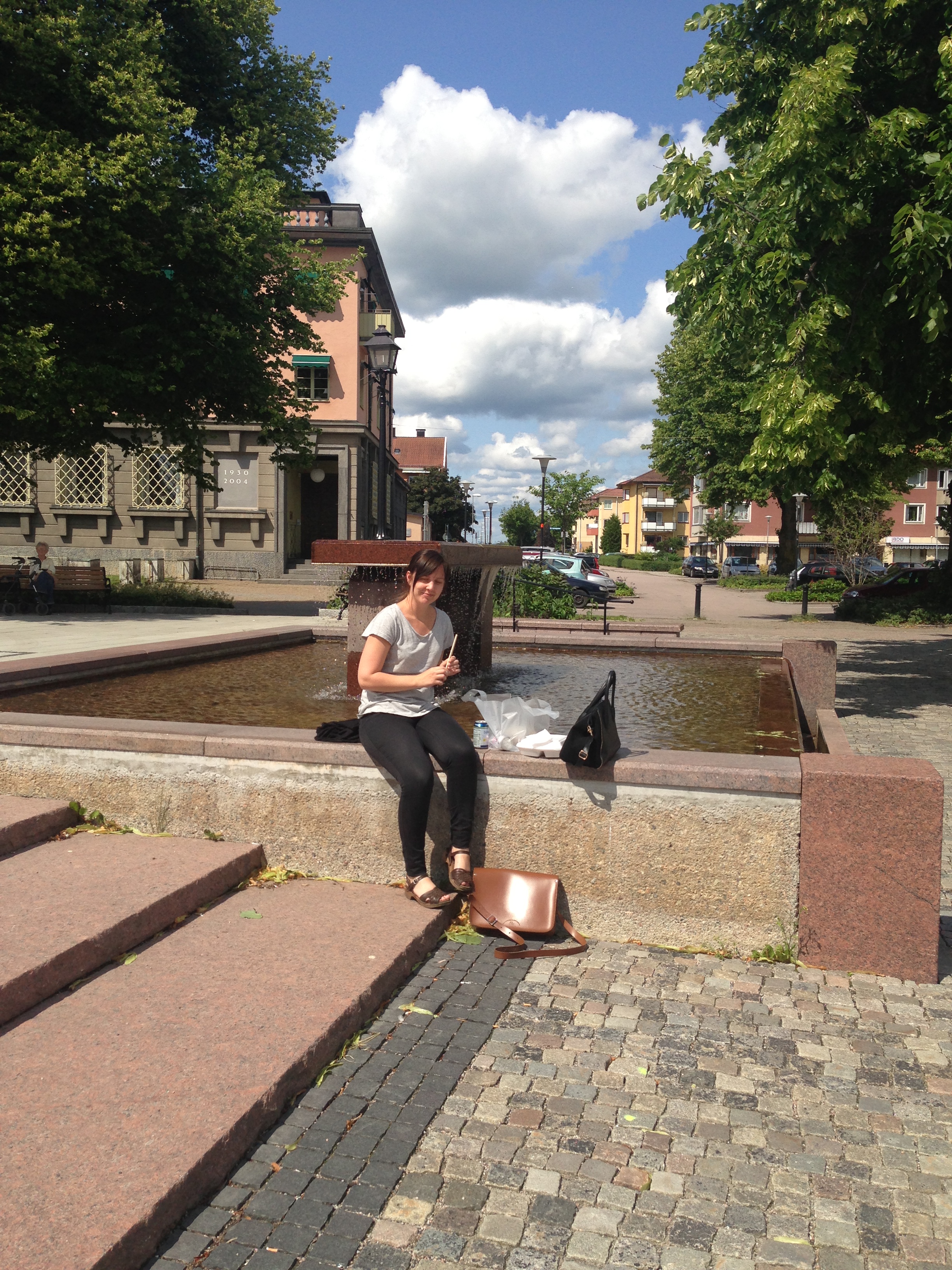 Today, me and Åsa my friend from work got sushi for lunch. We had it by a fountain in the park. It was a really nice day outside!