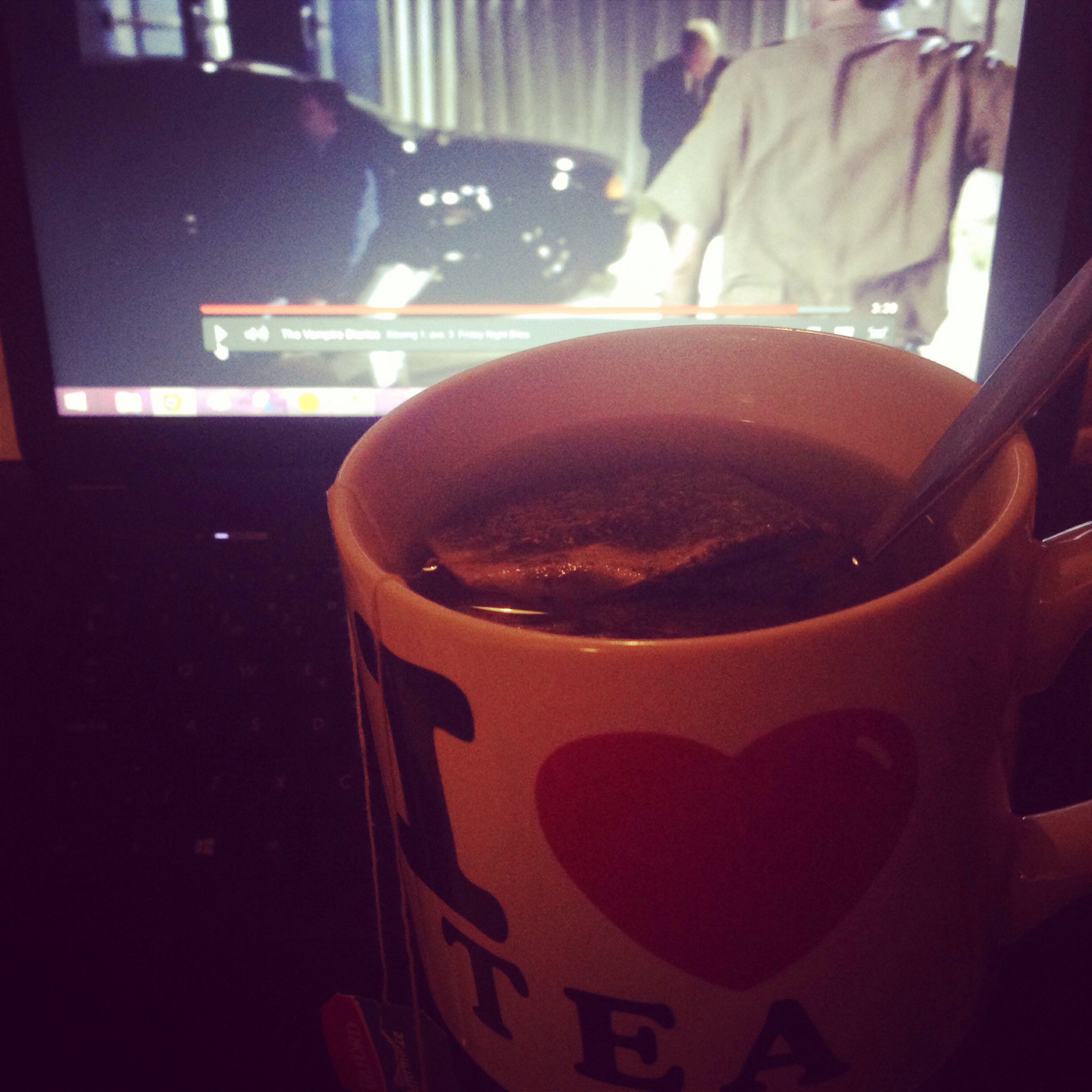 This is how I’m ending my weekend. A cup of tea and The Vampire Diaries!