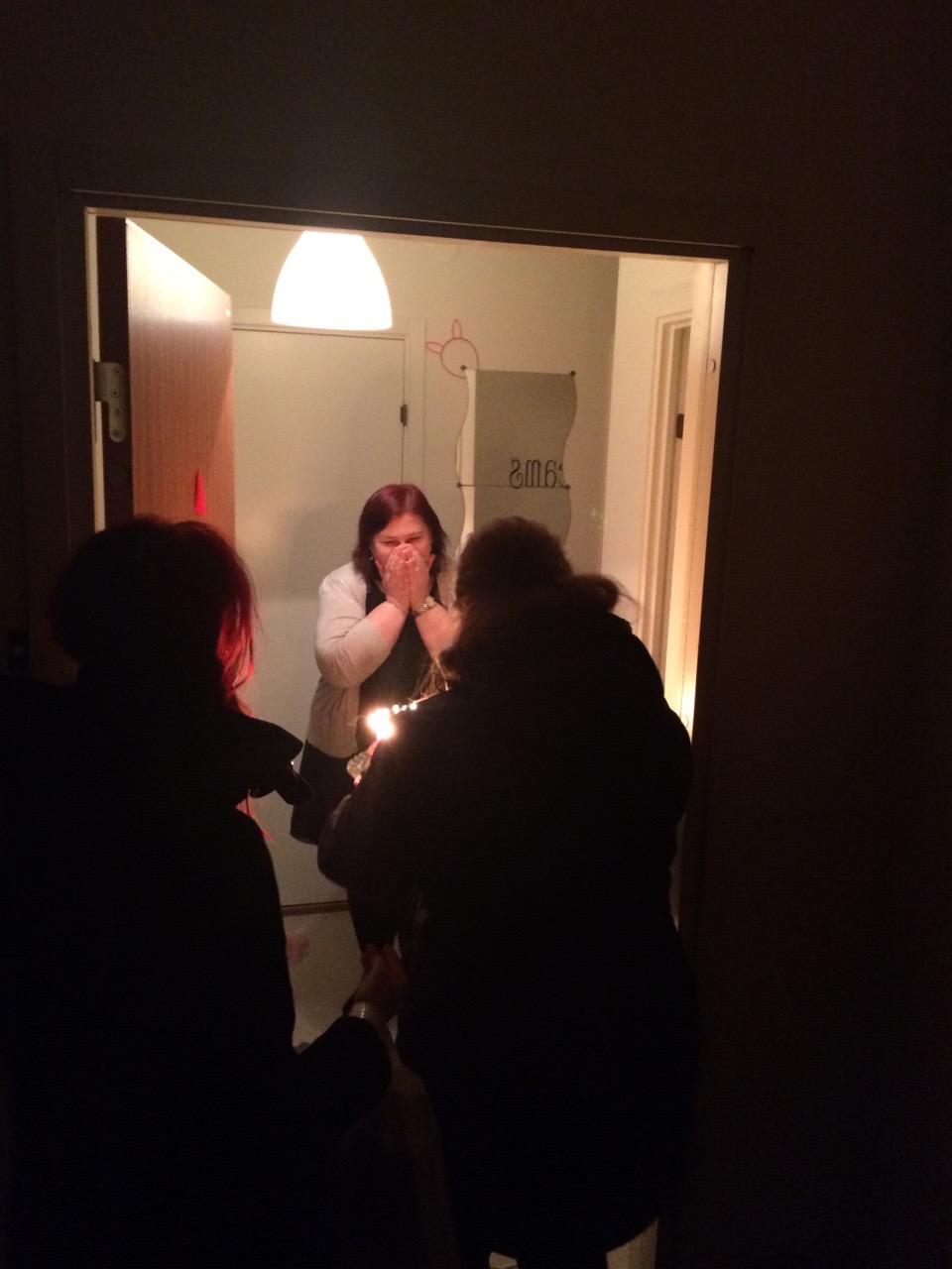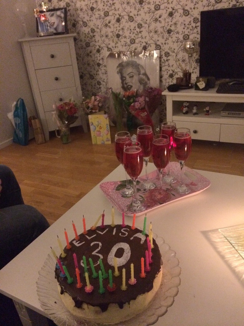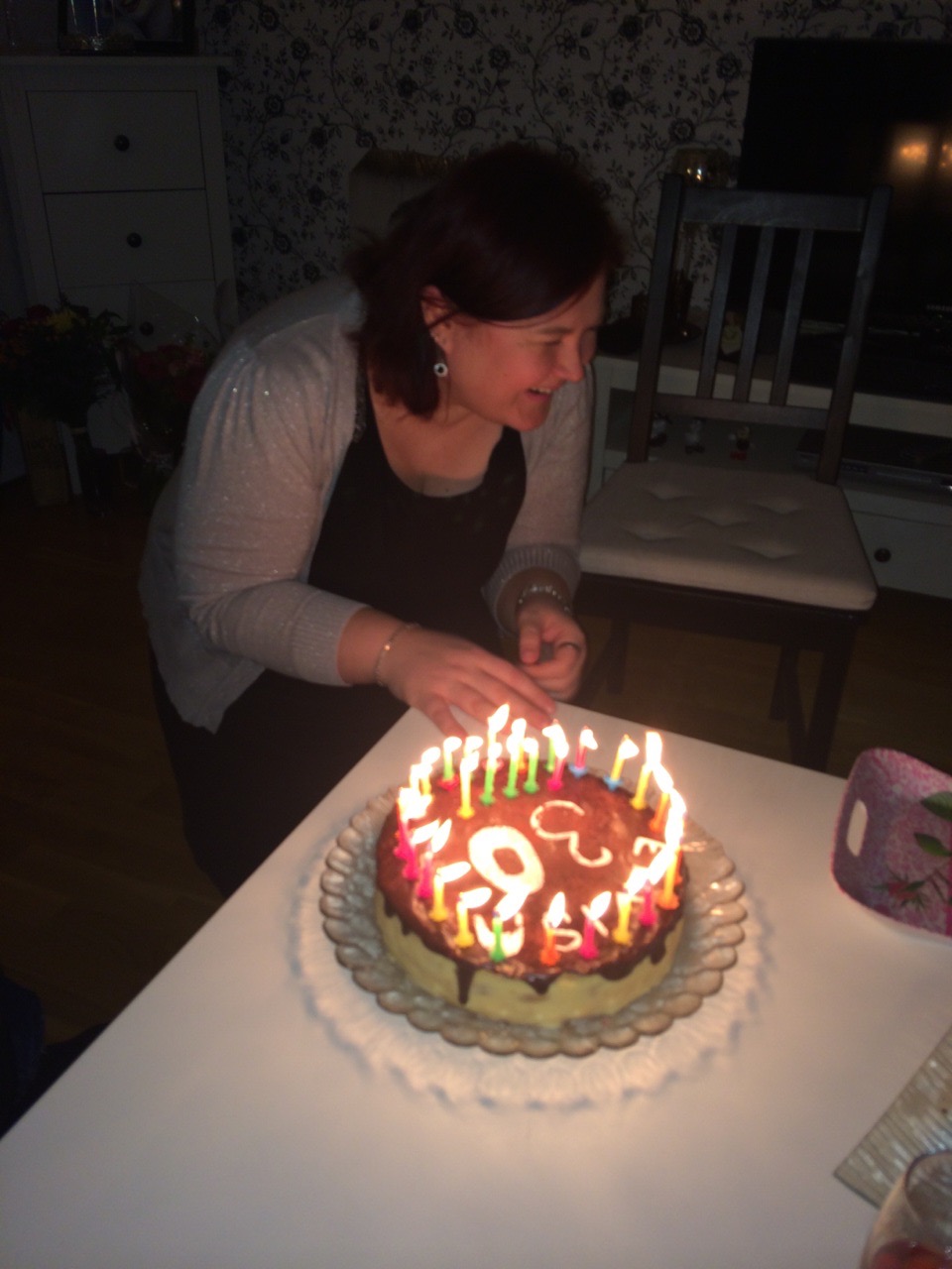 I couldn’t blow out the candles because I have a really bad cold at the moment and my friend was making me laugh while I tried